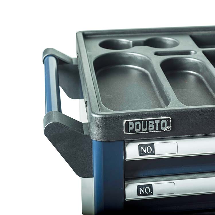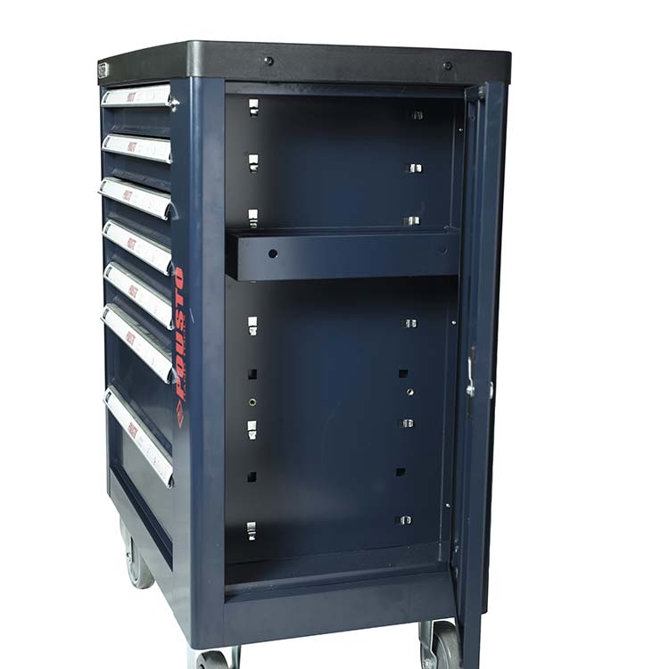 1.抽屜采用滾珠導(dǎo)軌,抽屜承重力為50kg/層,六層抽屜不同高度能儲存不同種類的工具,中央側(cè)鎖設(shè)計(jì),開啟方便,每個抽屜都配有防傾倒保護(hù)鎖。