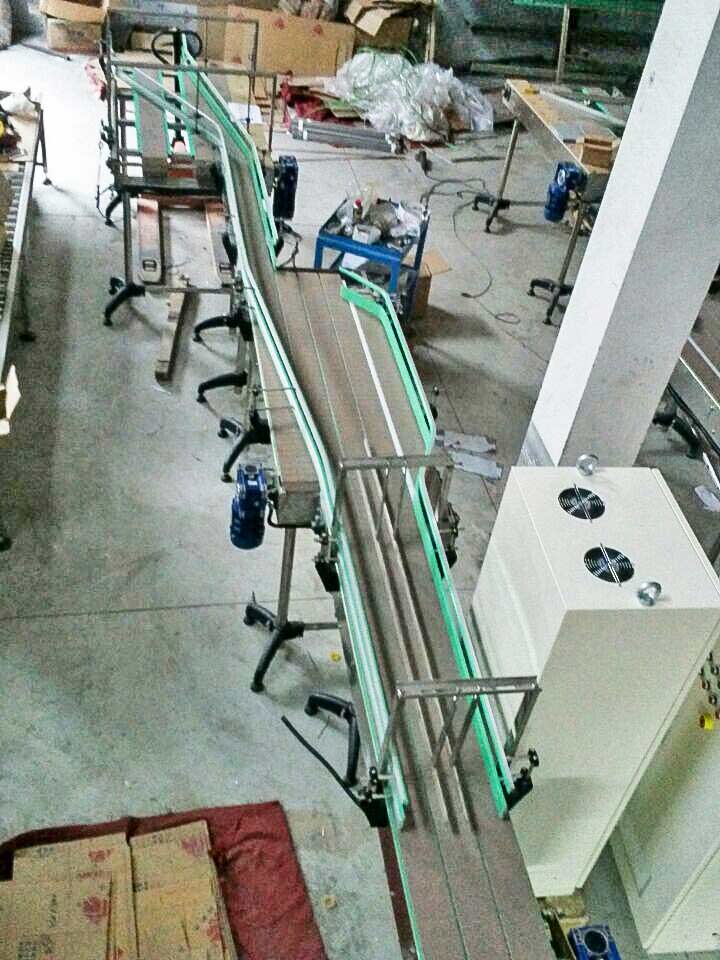 板鏈線由鏈條牽引,承重的鋼板、塑膠板等固定于輸送機(jī)兩側(cè)導(dǎo)軌內(nèi)的鏈條上,作為承重機(jī)構(gòu),和生產(chǎn)線同步運(yùn)行,可以實(shí)現(xiàn)產(chǎn)品的爬坡,可以實(shí)現(xiàn)生產(chǎn)的平穩(wěn)愉送。