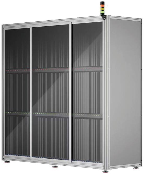 模塊化結(jié)構(gòu):通過貨架的模塊化,物料儲(chǔ)位的模塊化,亮燈引導(dǎo)設(shè)備的模塊化,實(shí)現(xiàn)快速、方便的組裝拆卸能力,同時(shí)靈活適應(yīng)各種SMT行業(yè)物料件規(guī)格